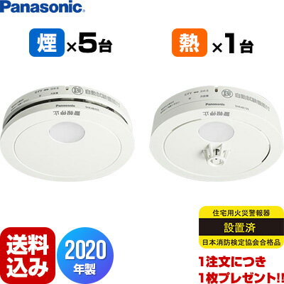 【あす楽】【送料込】パナソニック 薄型火災警報器 けむり当番5個+ねつ当番1個【合計6個】 SHK48455+SHK48155 ▼住宅用 火災警報器 火災報知器 熱式 日本消防検定協会検定合格品 SHK38155後継品 2020年製