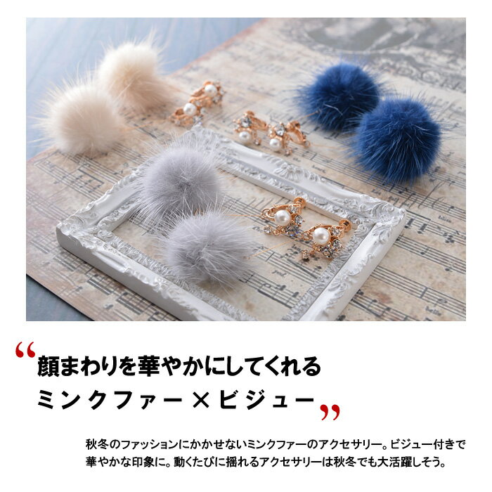 - 【201809UP】,アクセサリー,原宿,ファッション,パーツ,イヤリング,ミンク,ミンクファー,ミンク玉,ラインストーン,パール,ビジュー,光石,キラキラ,Luxury's,ラグリーズ,秋冬,アイテム,ホワイト,白,白い,グレー,灰色,ピンク,ベージュ,ネイビー,紺,ワイン,レッド,赤,赤い,ゴールド,大人,かわいい,可愛い,レディース,