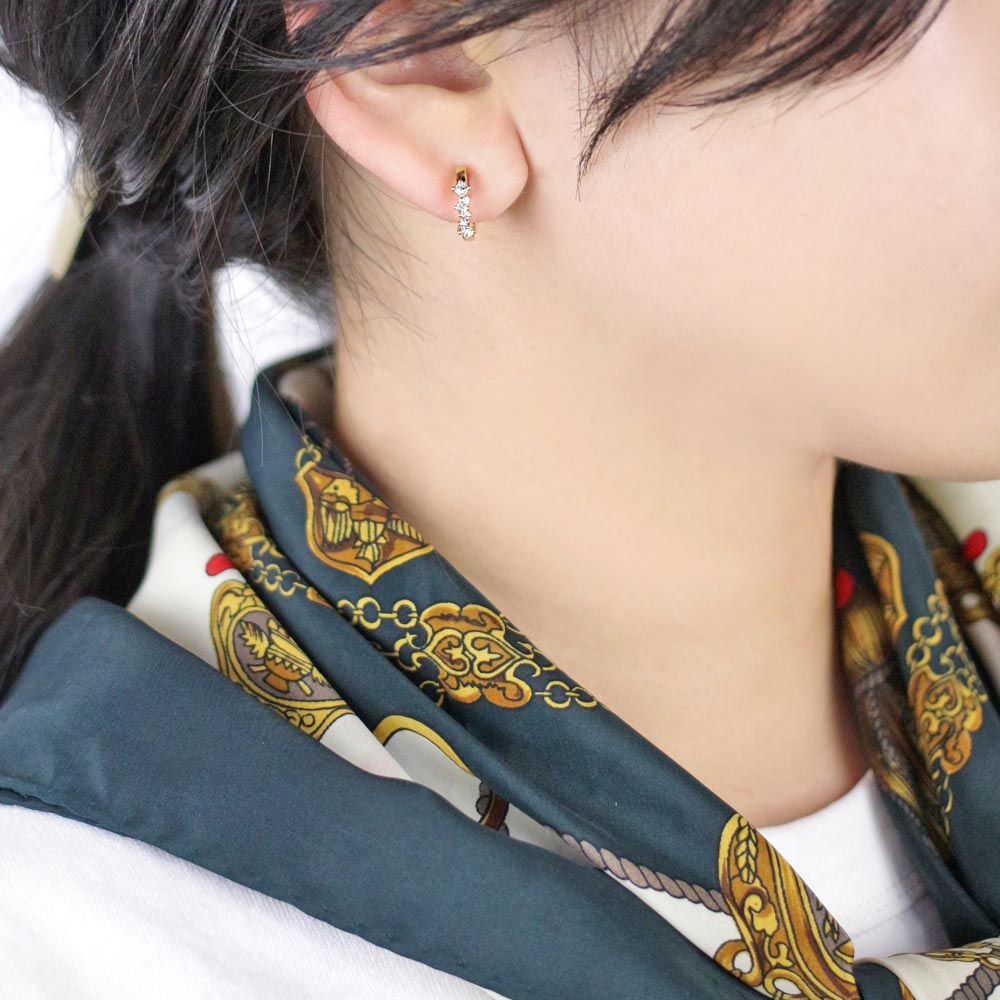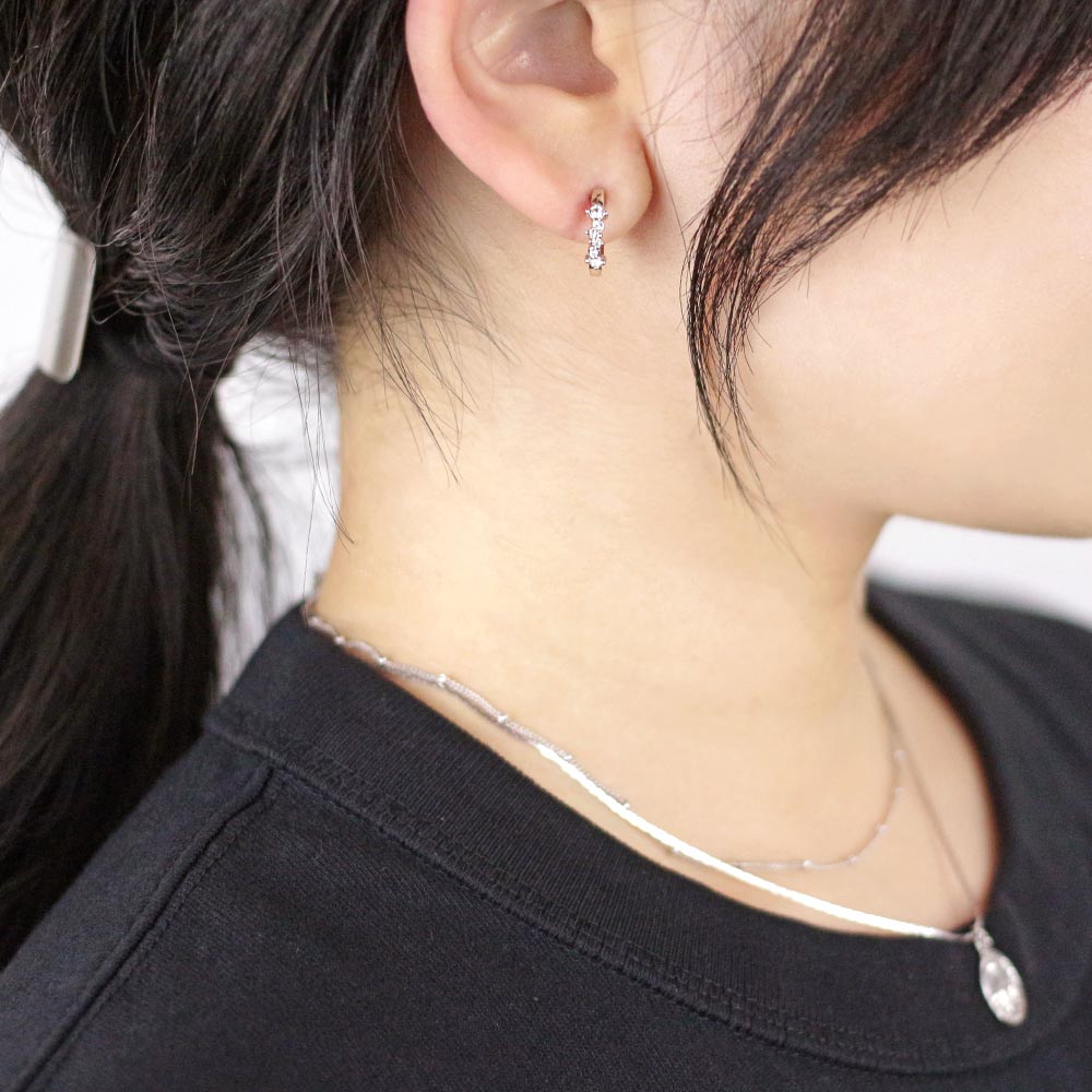 耳になじむサイズ感で、他のアクセサリーとの重ね付けもお勧め。